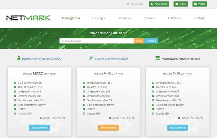 Jednocześnie ważna jest także szybkość działania, dużo opcji konfiguracji oraz możliwie najniższa awaryjność. Firm hostingowych w Polsce nie brakuje i dlatego czasem dokonanie wyboru okazuje się mocno problematyczne. Dzisiaj przyjrzymy się więc firmie Netmark i sprawdzimy dokładnie, co oferuje swoim klientom.