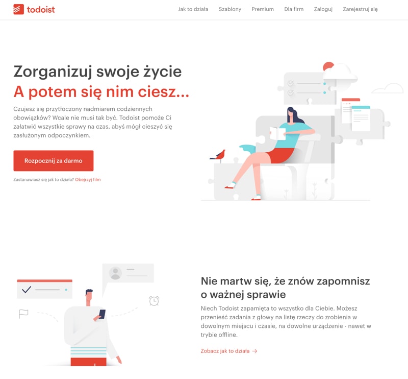 Funkcjonalność narzędzia Todoist [3] jest bardziej zbliżona do Nozbe. Osoby prywatne znajdą tam mnóstwo funkcji do zarządzania czasem pracy. Przedsiębiorcy natomiast uzyskują możliwość optymalizacji czasu pracy w zespołach odpowiedzialnych za różne projekty. Wadą niestety jest to, że Todoist ogranicza swoją funkcjonalność zależnie od wybranego pakietu. Im tańszy pakiet, tym mniej użytkowników, ale także mniejsza ilość opcji.